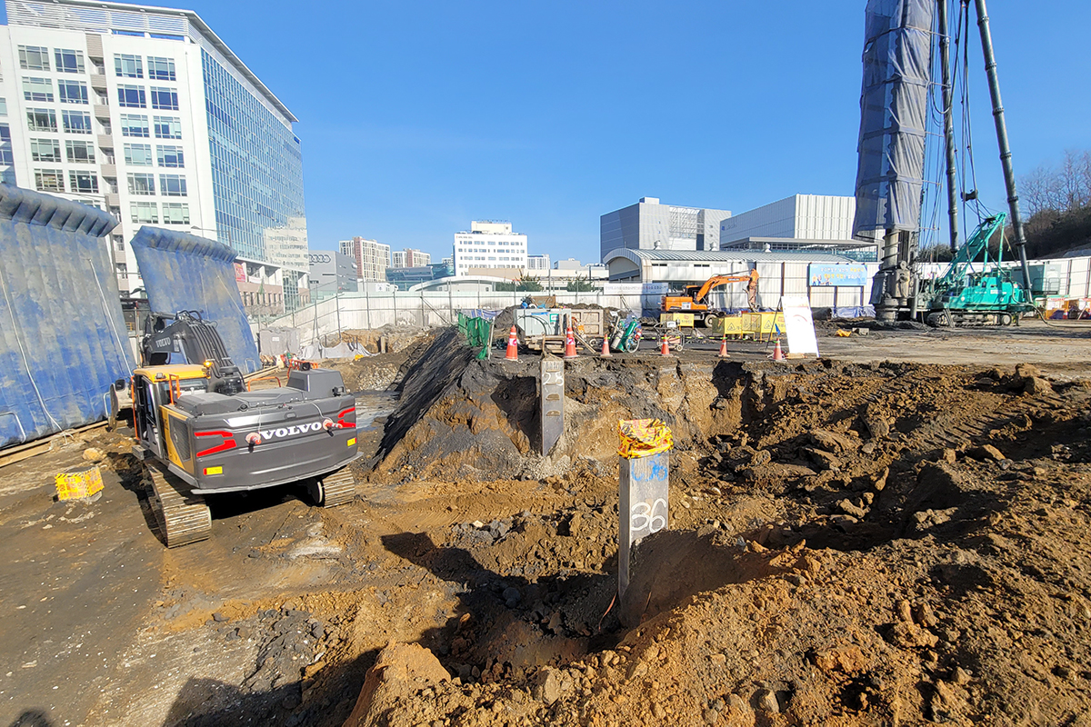 현장 부지 토공 141,304m3(발파포함), C.I.P 7,437m, 차수공사(ADG) 1식, PRD 1,808m [Full Top/Down]