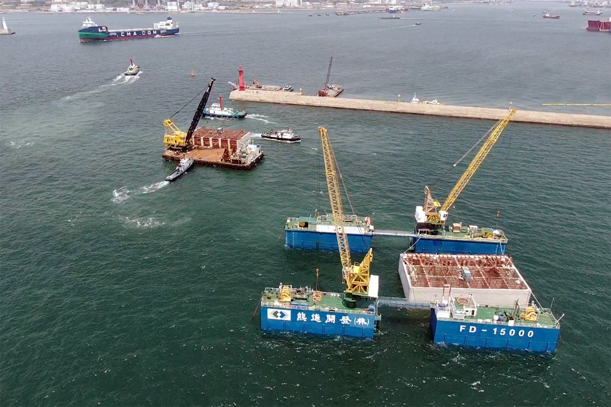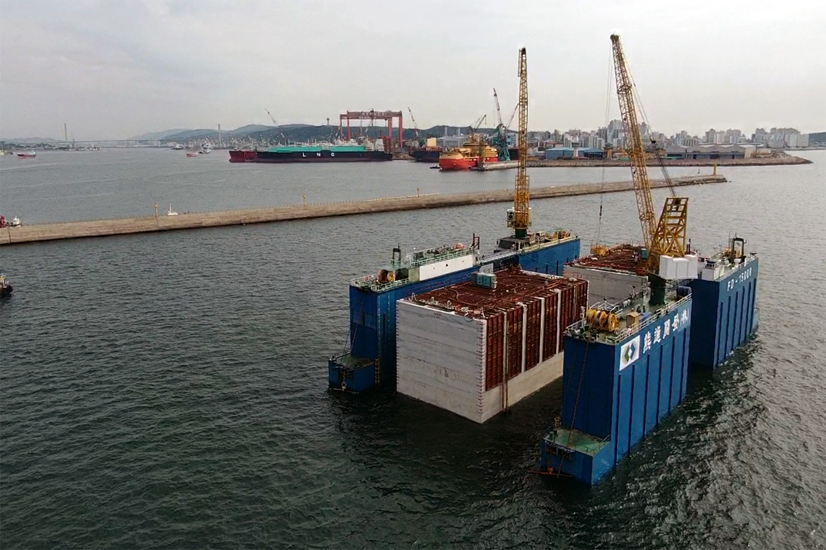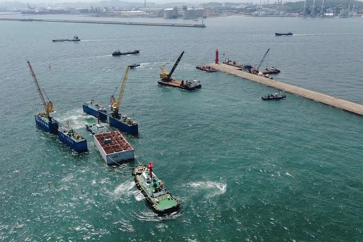 울산신항 동방파제 보강공사 중 케이슨공