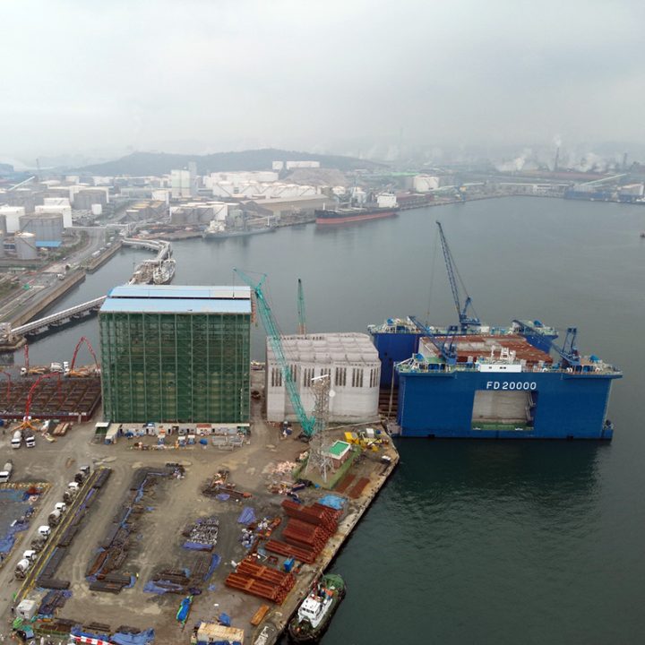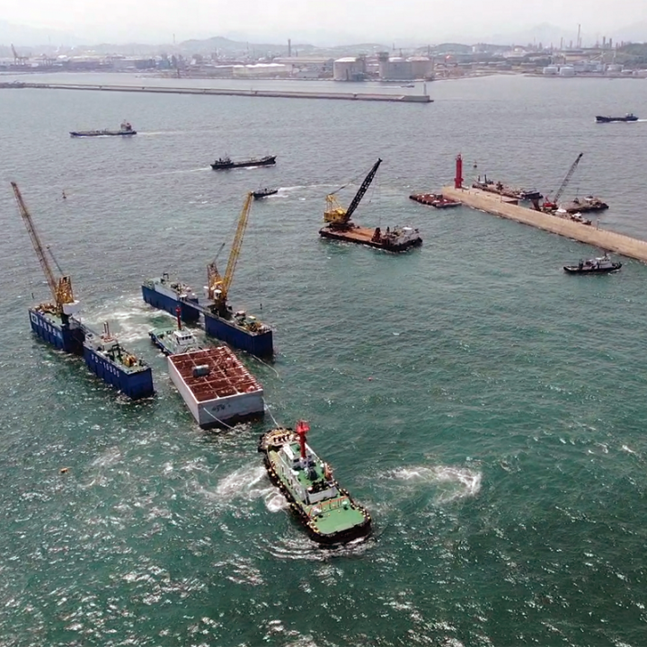 울산신항 동방파제 보강공사 중 케이슨공